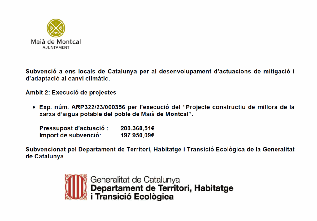 Actualitat, Agenda, General Subvenció de la Generalitat de Catalunya pel desenvolupament d’actuacions de mitigació i d’adaptació al canvi climàtic. < Entrada AnteriorEntrada Posterior >